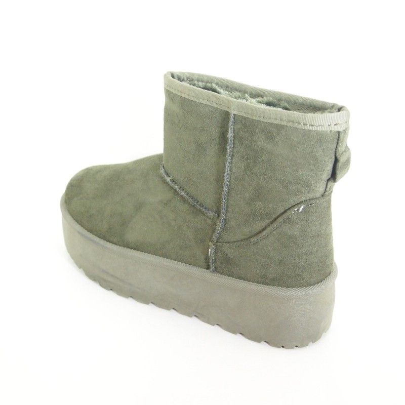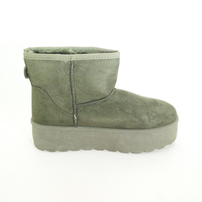 Una reinterpretación del clásico botín australiano, descubre este nuevo diseño de las botas de estilo australiano en antelina de color verde con una plataforma de 5 cm. y un acogedor forro de pelo. ¡Perfectas para no sufrir las bajas temperaturas del invierno!