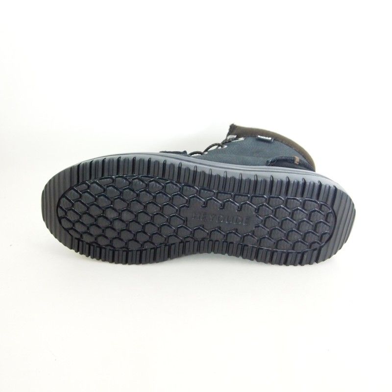 Botines Dude Bradley Boot Leather 40189 elaboradas en cuero resistente al agua, disponen de forro interior de lana, muy suave y transpirable. Son sorprendentemente ligeras y cómodas y de color negro. Sistema de cordones elásticos que no se atan.