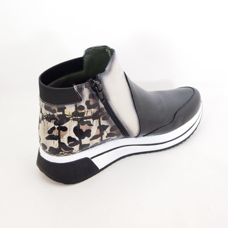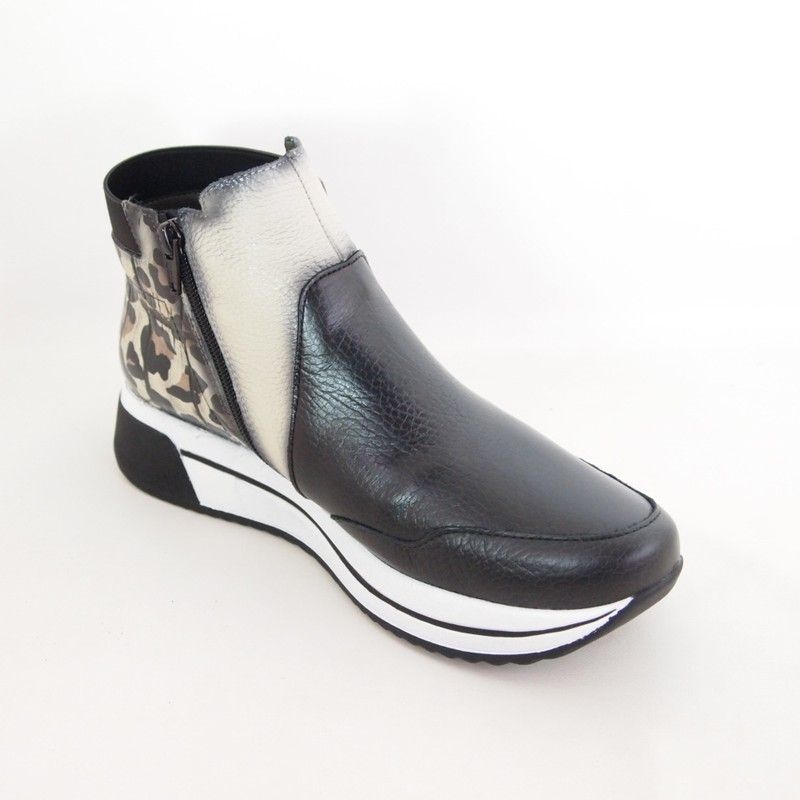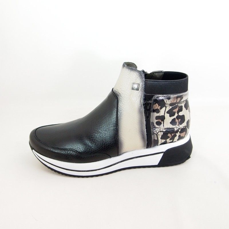 Botines de corte urbano José Sáenz Jane 3123-BG-KD en combinación de pieles de colores beige y negro con ajuste de cremallera lateral. Suela de 4 cm.