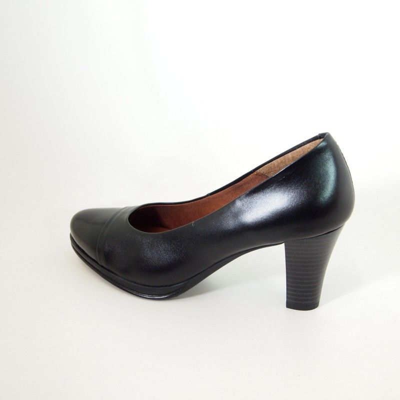 Salones Chamby 4301 en piel negra con puntera en piel florentik negra. Tacón de 7,5 cm. y plataforma de 1 cm.