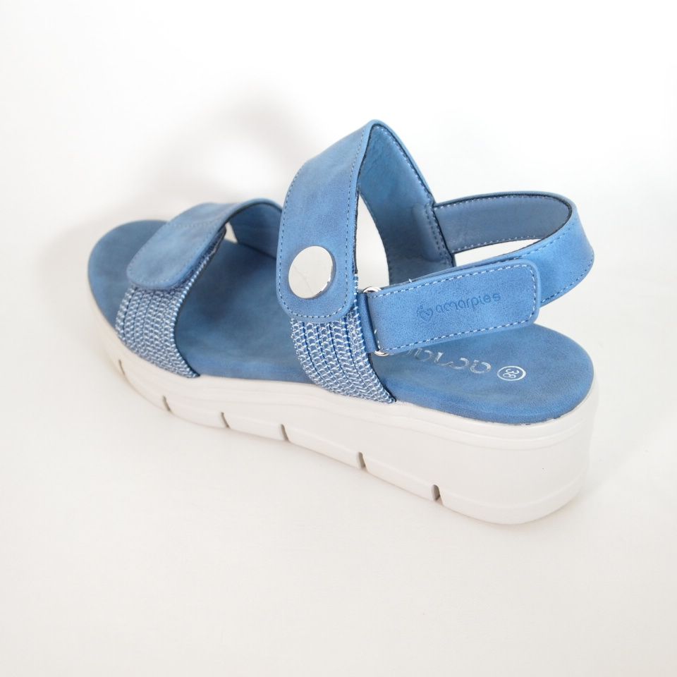 Sandalias Amarpies ABZ23505 de color beige que se caracterizan por su ergonomía, ligereza, flexibilidad, y por adaptarse en todo momento a la forma natural del pie proporcionando descanso y libertad de movimiento. Ajuste de velcro. Cuña de 6 cm.