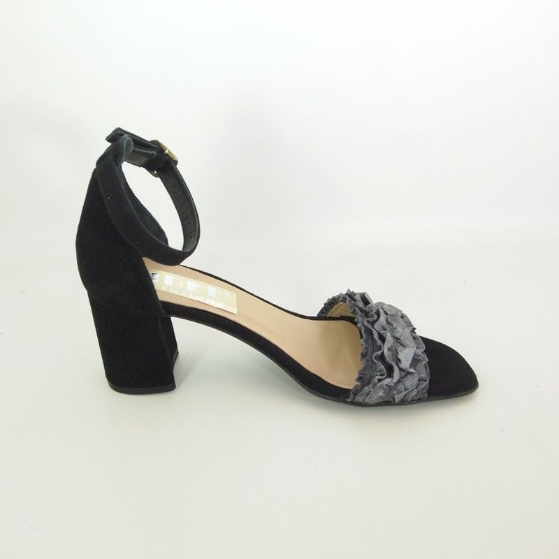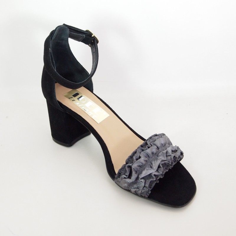 Sandalias para mujer con tacón Idee Italiane 1305 con tira textil y talonera en piel negra con hebilla en la tira para su mejor ajuste. Tacón de 7 cm. con plataforma de 1 cm.