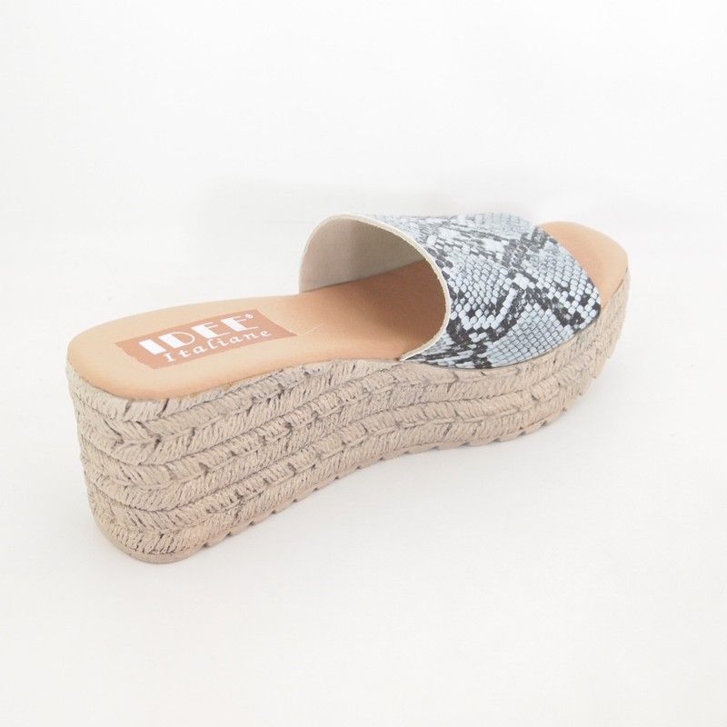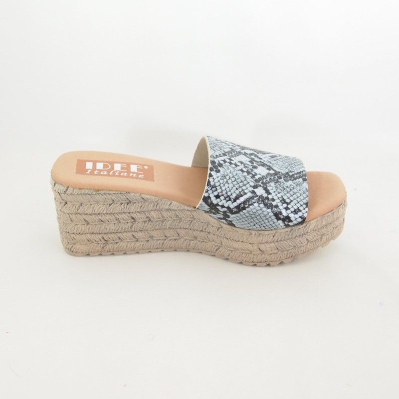 Sandalias Idee Italiane 1318 de pala en piel con grabado reptil. Cuña de 7 cm. con plataforma de 4 cm.