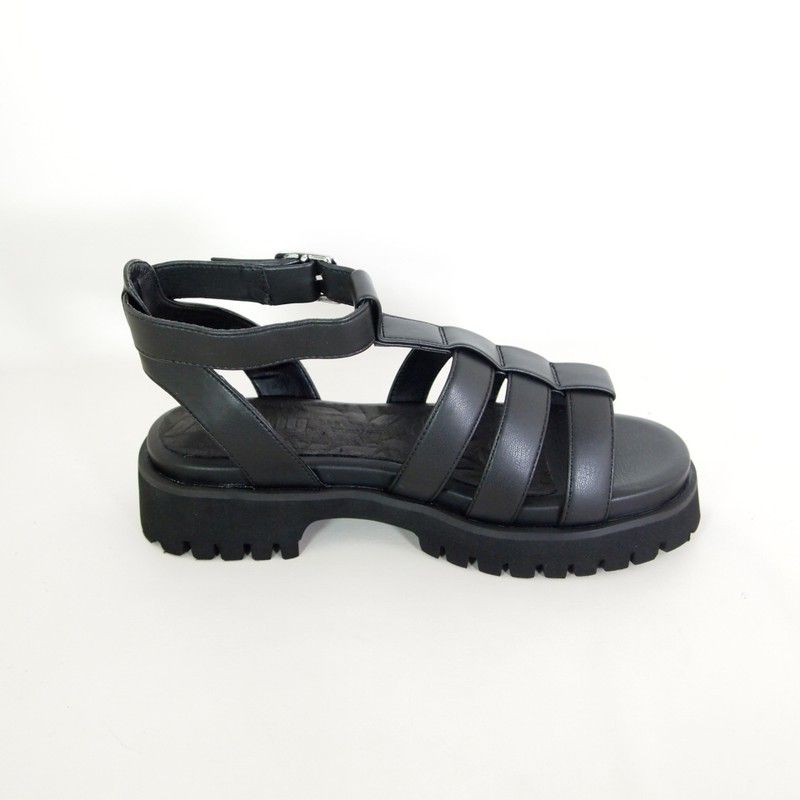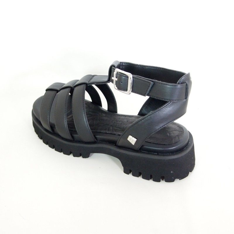 Sandalias Mustang 53302 con diseño de tres tiras en la zona de los dedos en color negro, fabricada en piel sintética. Cierre mediante hebilla al tobillo, plantilla acolchada fabricada en piel. Suela de goma gruesa con plataforma delantera de 3 cm y tacón ancho de 4 cm