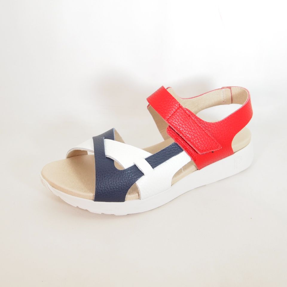 Sandalias Pitillos 11230 en combinación de colores rojo, azul y blanco ofrece una fusión perfecta de comodidad y estilo para el día a día. Confeccionada en España con materiales de alta calidad, esta sandalia con cuña es ideal para mujeres que buscan un calzado versátil que acompañe tanto looks informales como más arreglados. El diseño combina dos tonos en acabado charol que aportan un toque de originalidad y frescura. El cierre de velcro permite un ajuste sencillo y rápido, adaptándose a distintos anchos de pie. La plantilla acolchada proporciona una gran amortiguación, mientras que la cuña ligera asegura una pisada estable sin renunciar a la elegancia. Gracias a su diseño anatómico, estas sandalias son ideales para caminatas prolongadas o jornadas activas, sin sacrificar estilo ni confort. La suela antideslizante garantiza mayor seguridad en cada paso. El modelo 11230 es una excelente elección para mujeres de todas las edades que buscan un calzado funcional, con buena sujeción y un diseño atractivo y actual. Perfectas para el verano y combinables con vestidos, pantalones o faldas, estas sandalias están pensadas para ofrecer bienestar, sin renunciar a una estética cuidada y moderna.