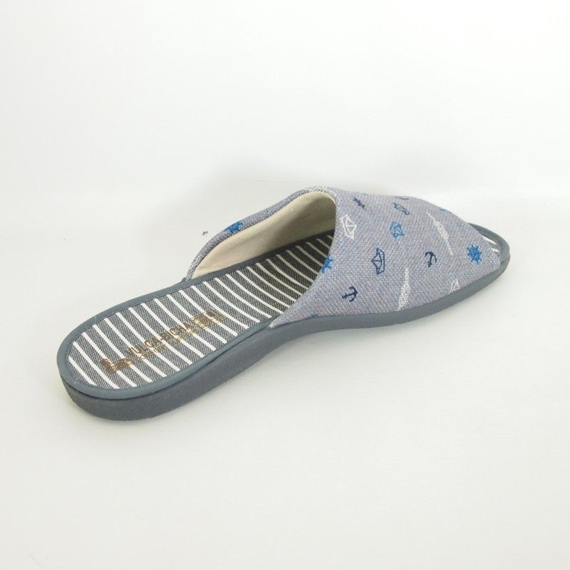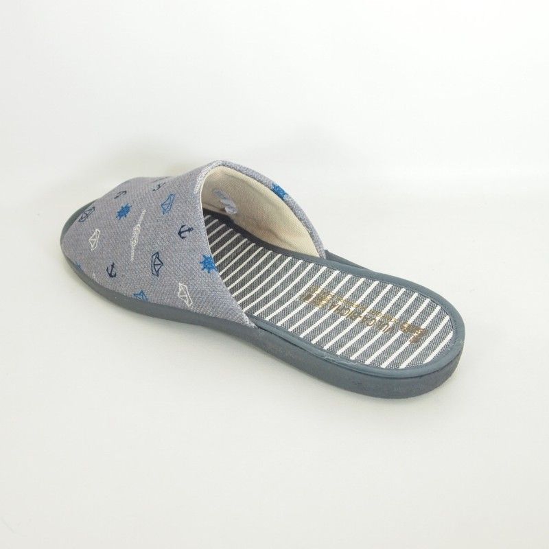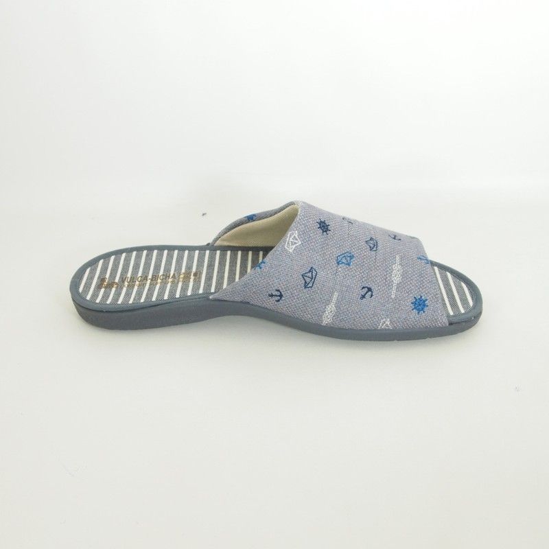 Zapatilla casa Vulca-Bicha 438 en tejido gris con bordados marineros con suela de caucho natural.