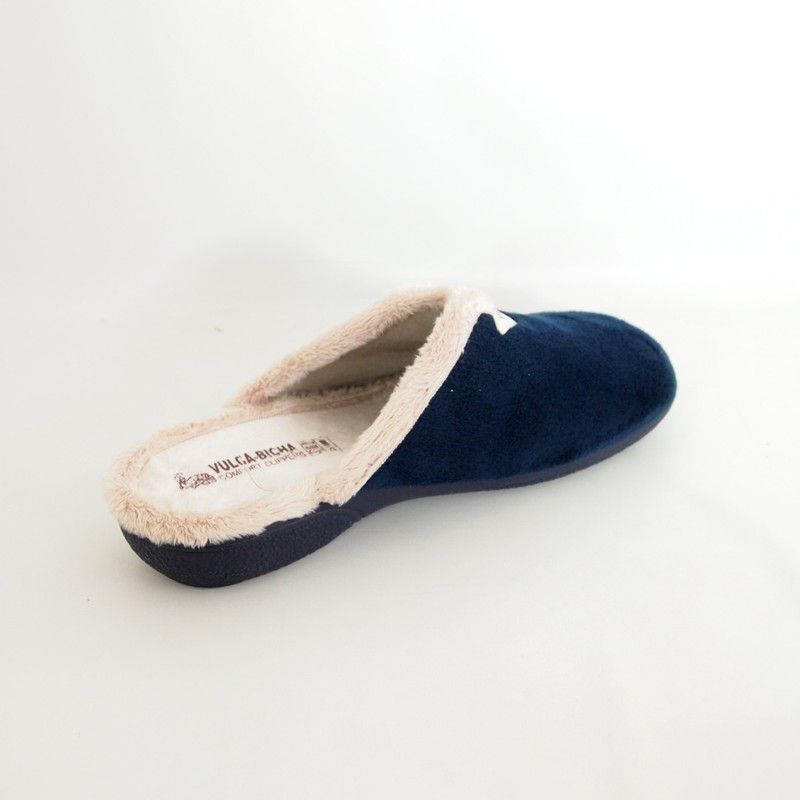 Zapatillas de estar por casa Vulca-Bicha 2739 en suave tejido color azul marino con suela de caucho natural