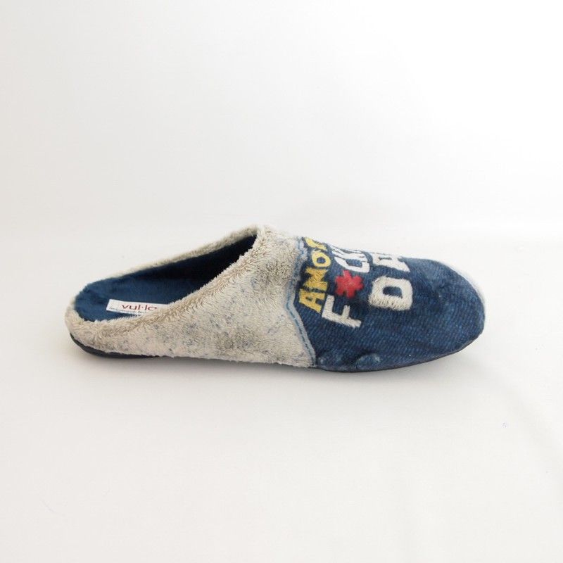 Zapatilla de casa ilustrada Vul Ladi 5630 para hombre en color niquel. Zapatilla destalonada con suela de 2 cm de goma, exterior textil e interior forro y planta textil suave. Si eres un apasionada del invierno, necesitas estas zapatillas de pelo para estar cómoda y calentita en los días más fríos de la temporada.
