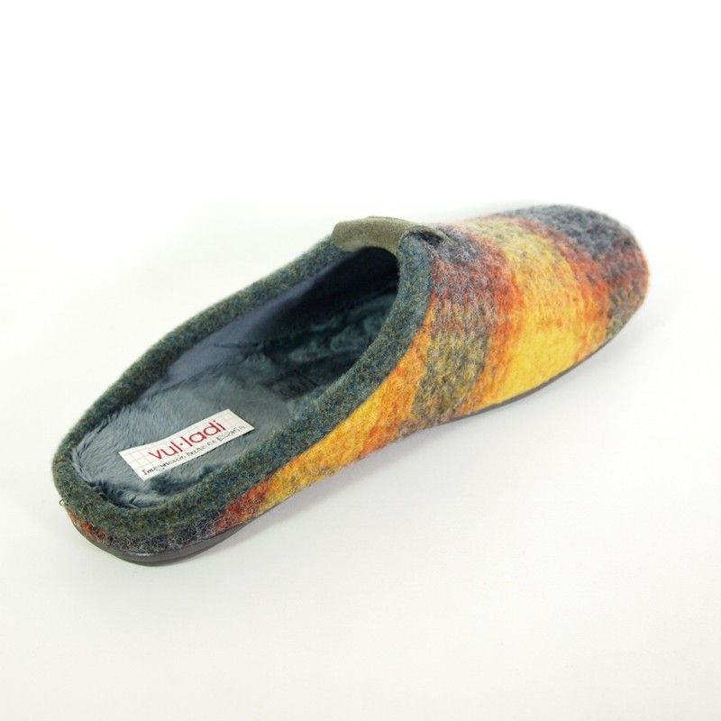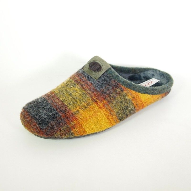 Zapatillas de casa Vul·ladi 6612_312 en color ocre con plantilla y suela de caucho natural.
