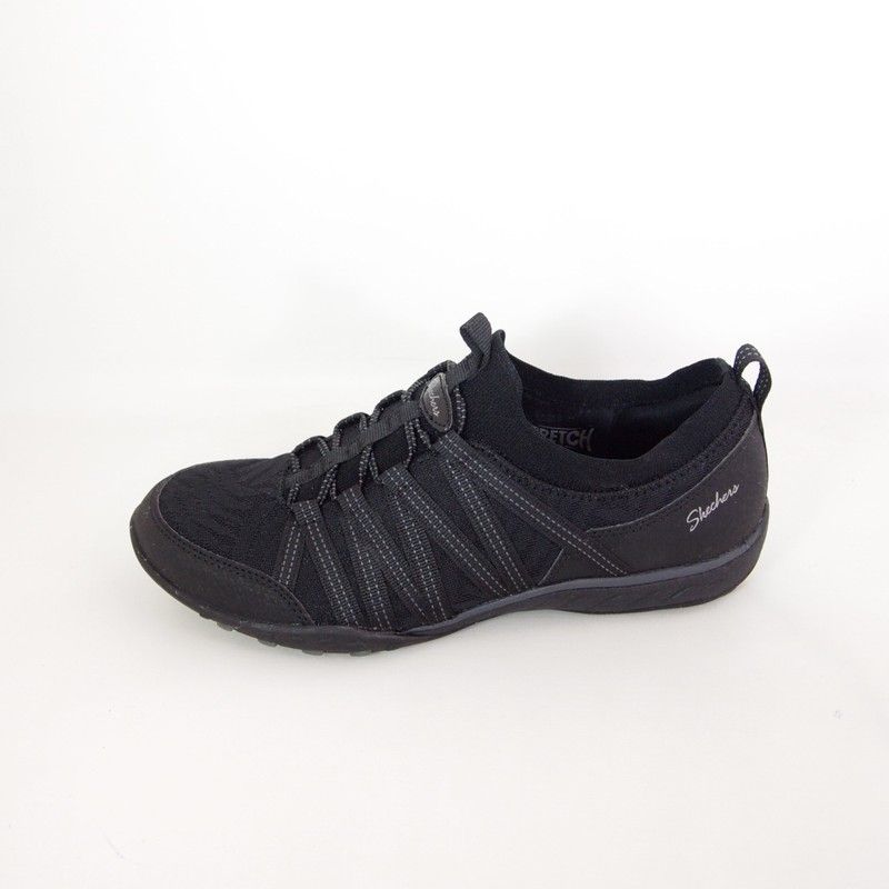 Zapatillas de deportes Skechers 100244 Breathe Easy First Light fabricados en material sintético color negro con ajuste de cordones elásticos y plantilla Memory Foam.