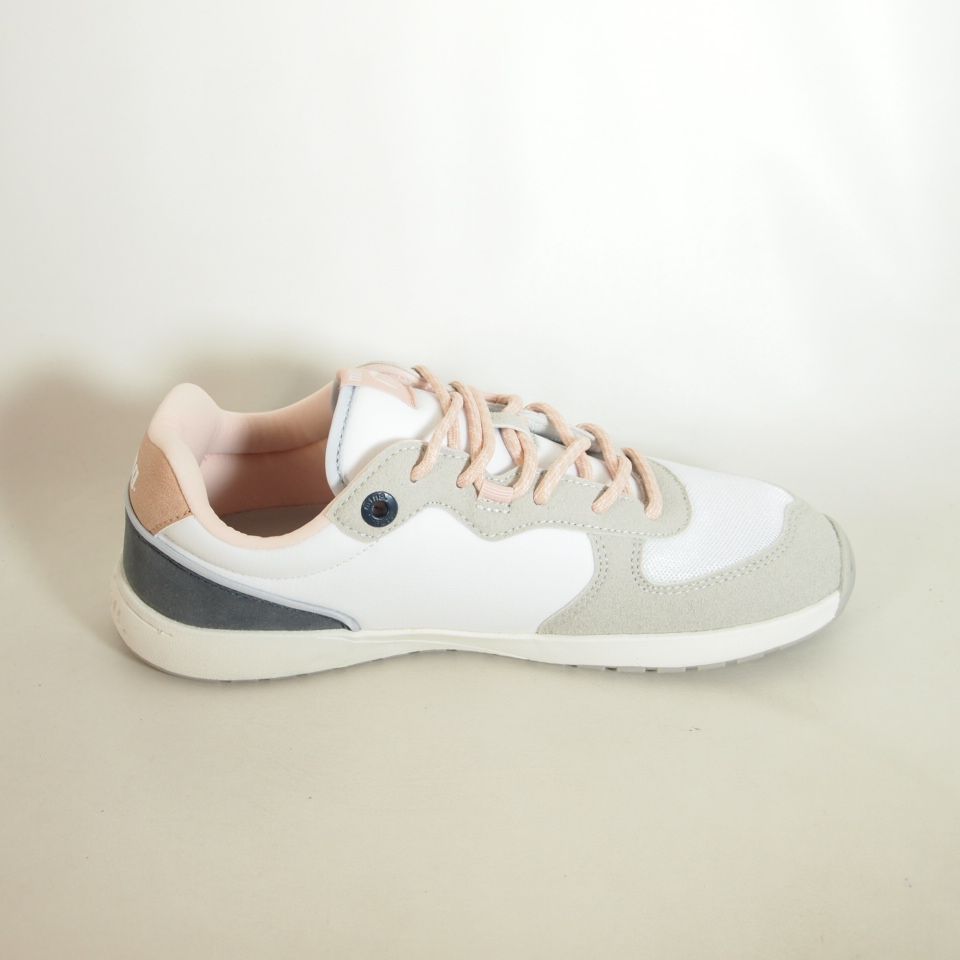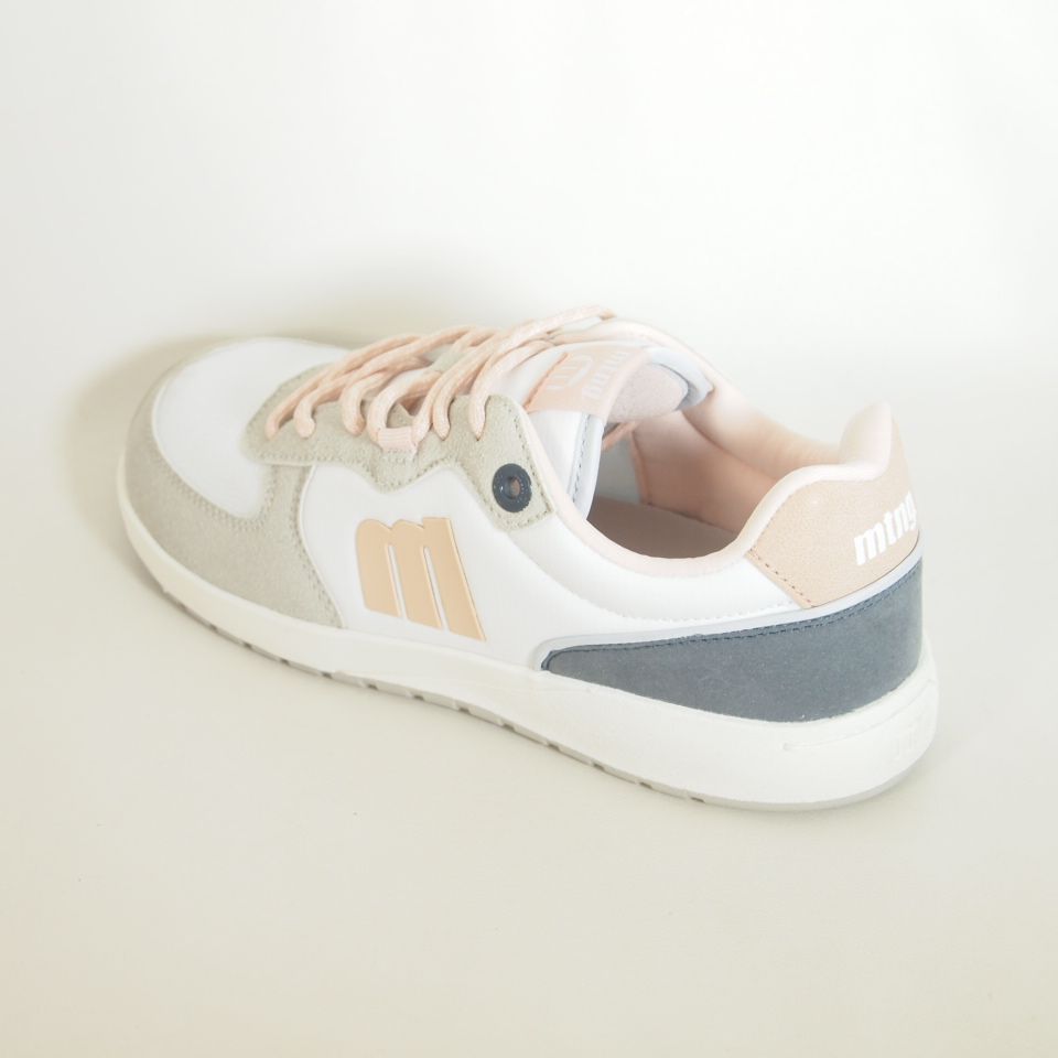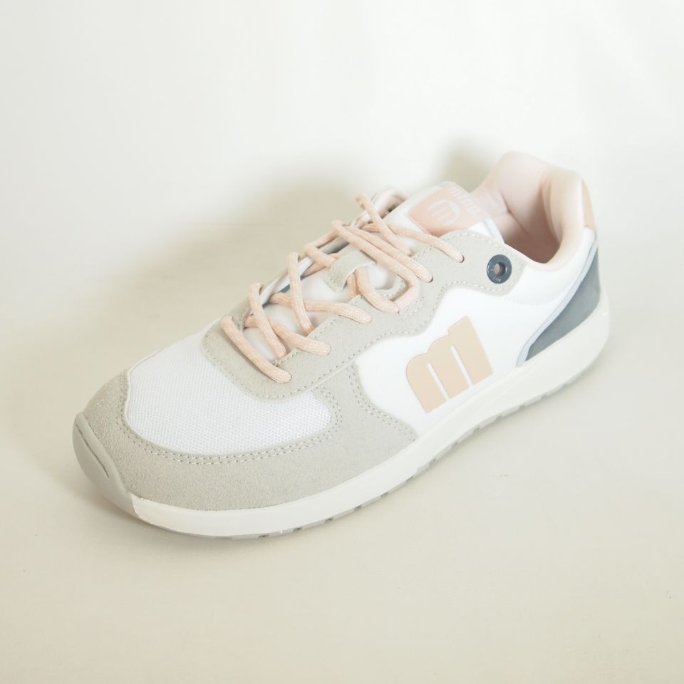Zapatillas deportivas Mustang 60857 de color blanco con puntera ancha, suela totalmente plana y flexibilidad, que mejora la anatomía del pie y favorece una mejor posición del mismo.