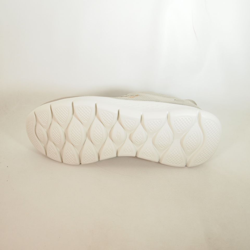 Zapatillas deportivas Skechers 216924 Go walk Flex de color taupe diseñado con nuestro sistema Heel Pillow, este modelo vegano slip-on cuenta con una parte superior de malla técnica con cordones elásticos planos sin atar, una plantilla Skechers Air-Cooled Memory Foam T y una media suela ligera con amortiguación ULTRA GO Foam.