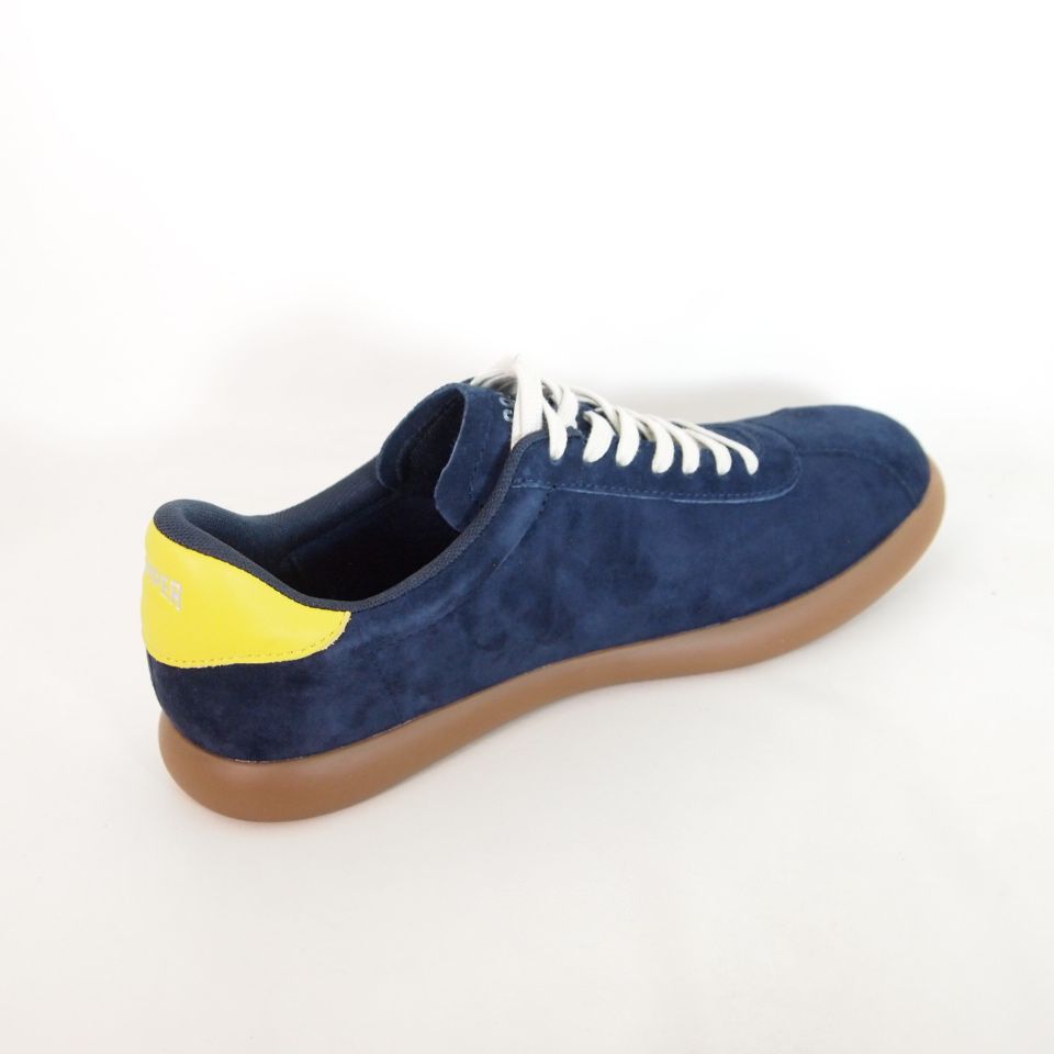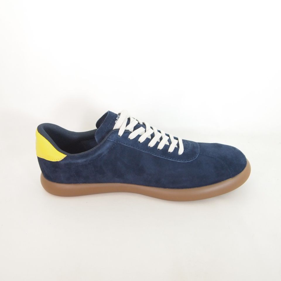 Zapato Camper K100937-020 Pelotas Soller color azul-miel Sneaker fabricado con piel porcina y nobuk para hombre con plantillas OrthoLite Recycled y suelas de goma.