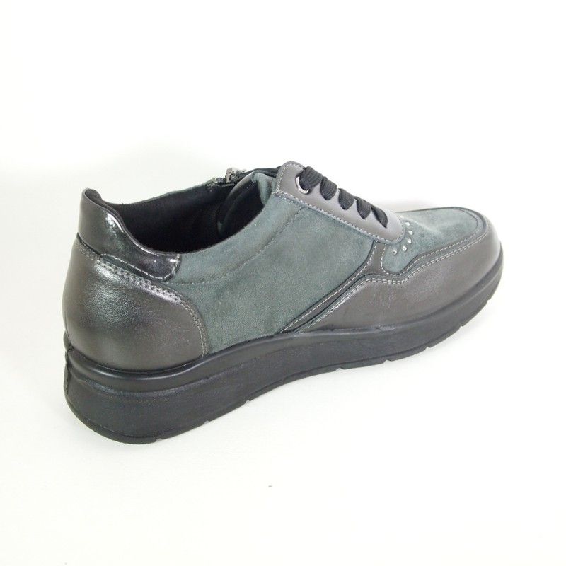 Zapatos Amarpies ATL 27022 de color plomo con cierre de cordones y cremallera lateral. Suela de goma de 4,5 cm y plantilla acolchada extraíble.