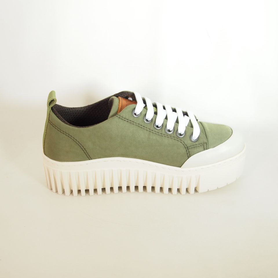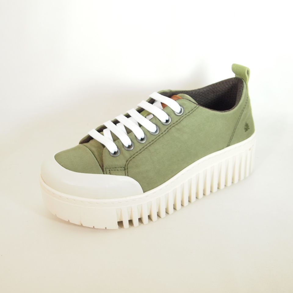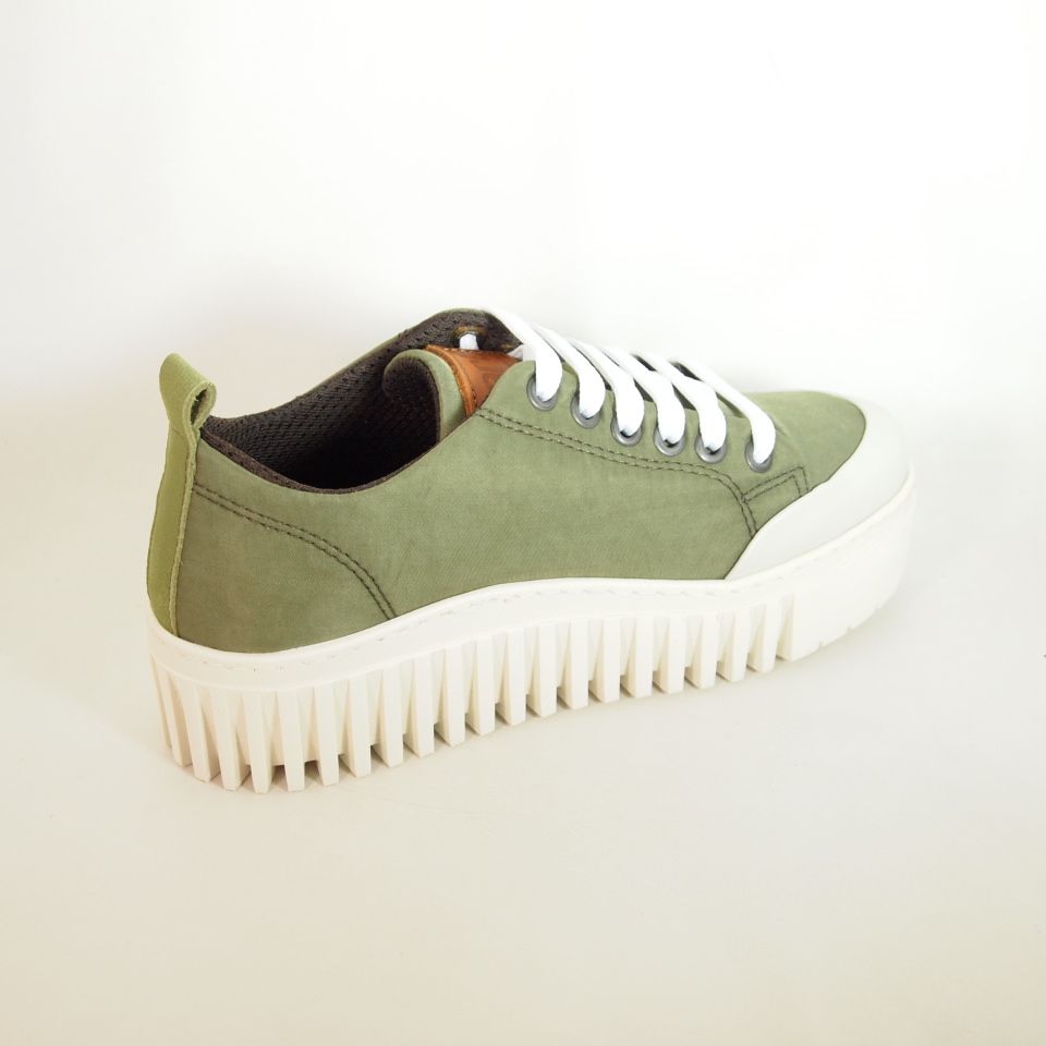 Zapato deportivo con plataforma corrida de 4 cm. Art Brighton1534 para mujer en nylon de color salvia con cierre con cordones, altura de cuña 4 cm, zapato de estilo casual, suela de goma termoplástica, con plantilla de microfibra transpirable y extraíble.