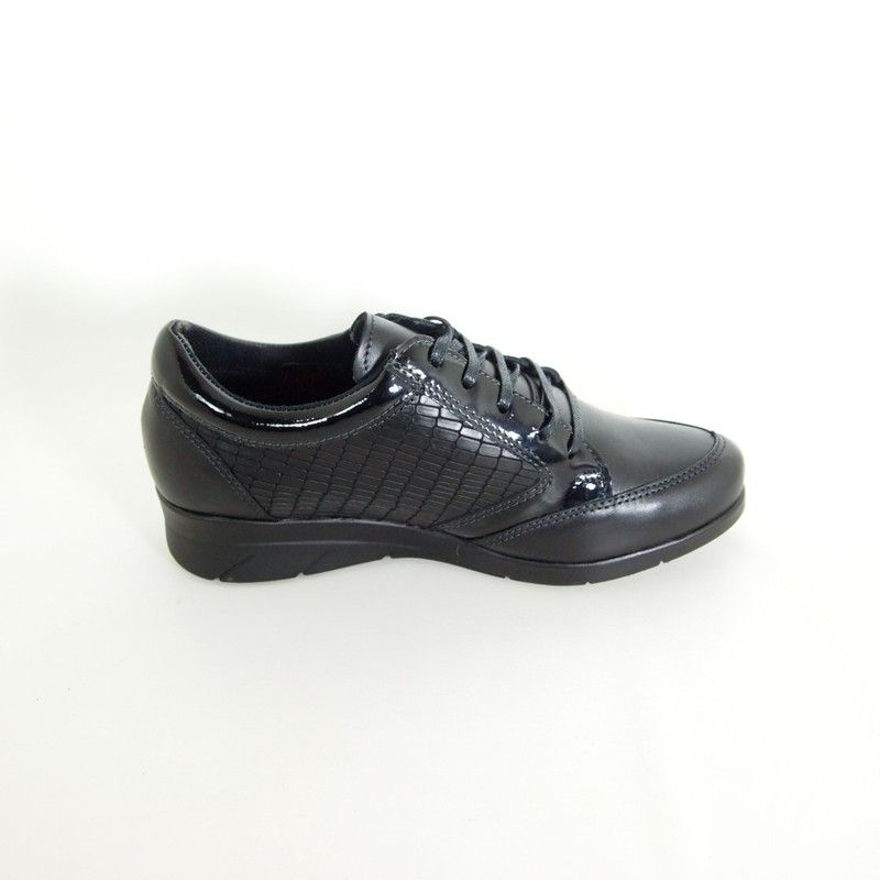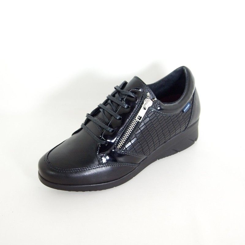 Zapatos Baerchi 36315 en combinación de pieles color negro con ajuste de cordones y cremallera, Pequeña cuña de 4 cm. Suela de caucho antideslizante.