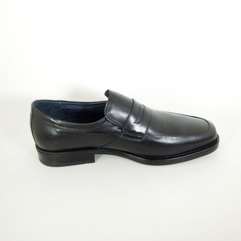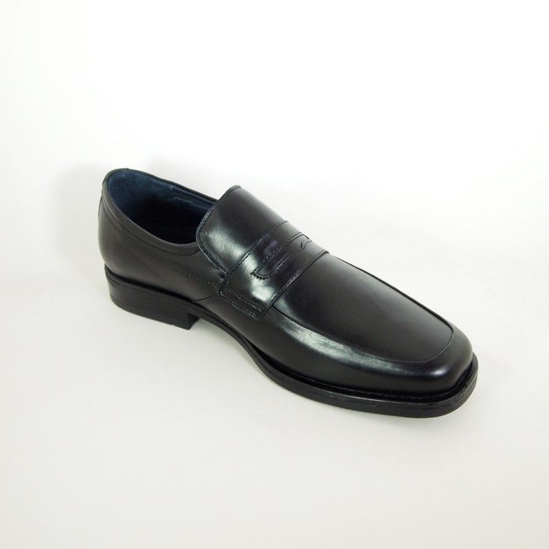 Mocasin de caballero con antifaz en piel negra y piso de goma.