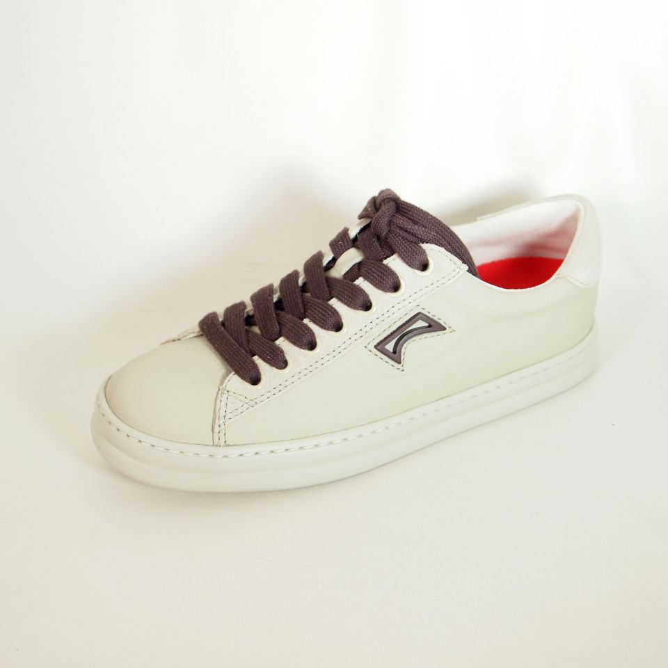 Zapatos Camper K201855_005 Runner Four de color beige en piel vacuna y nobuk con plantilla de PU extra cómoda y suelas XL EXTRALIGHT de EVA.
