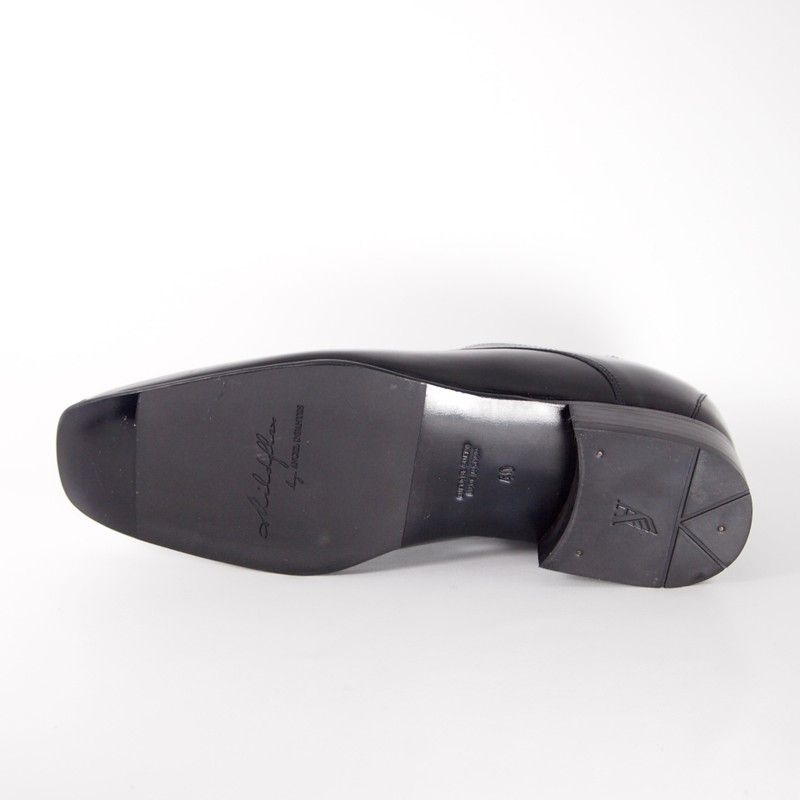 Zapatos con alzas de caballero de +7 by Mildfkex creado por Angel Infantes, modelo 98013 en piel florentic negro, forro de piel y suela mixta de cuero y goma para mayor agarre al suelo y durabilidad con una cuña interior de 30 mm diseñada para elevar la altura, está compuesta de de un 65% de isocianato y un 35% de poliol, la unión de estos dos componentes dan consistencia a dicha cuña para que no se deforme al caminar. Zapatos exclusivos ideados para incrementar la altura 7 cm gracias a la técnica 3 cm (cuña)+ 4 cm de suela.