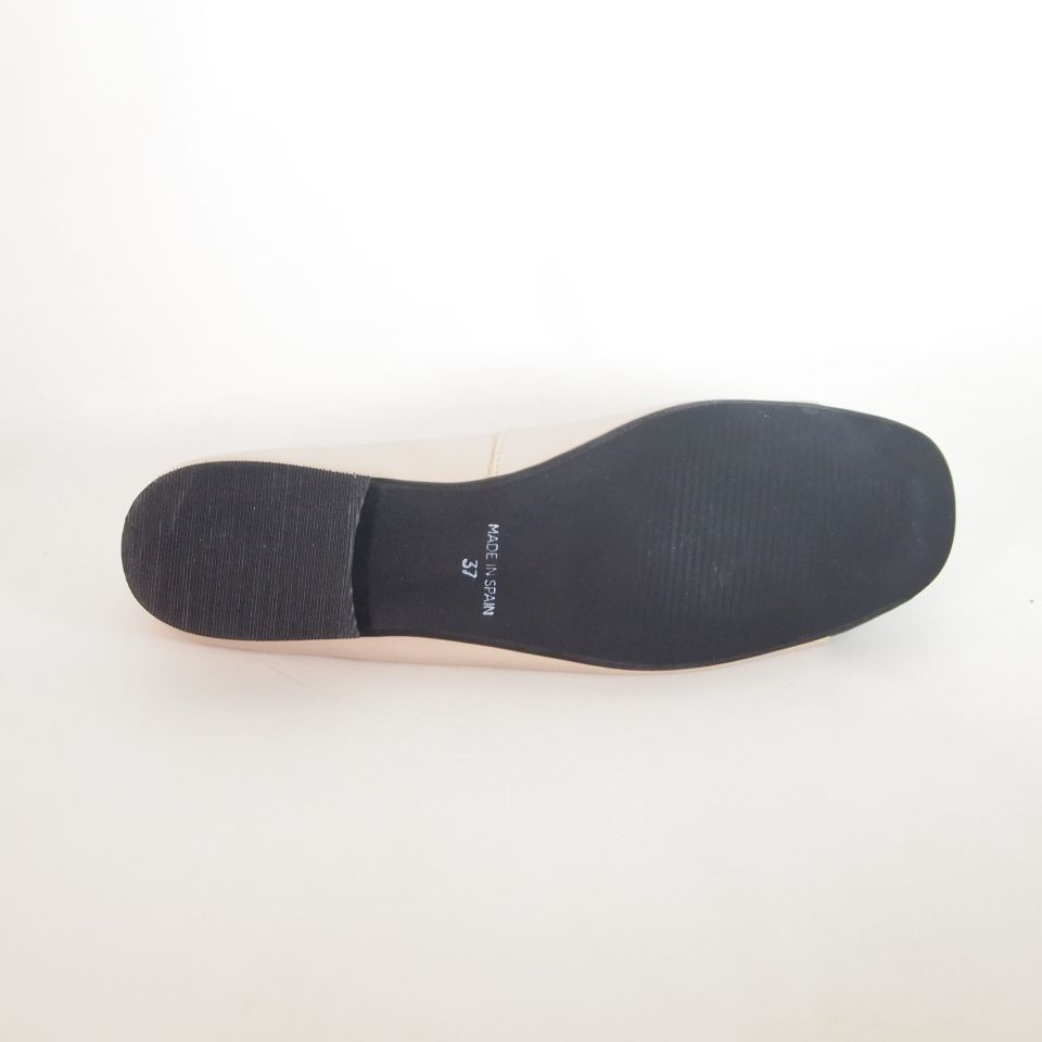 Zapatos Invogue 105 corte salón en piel color beige con puntera en charol negro.