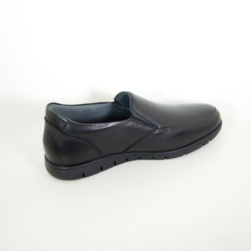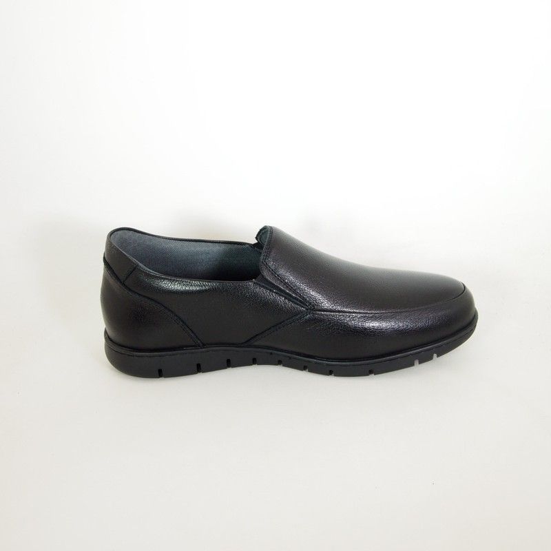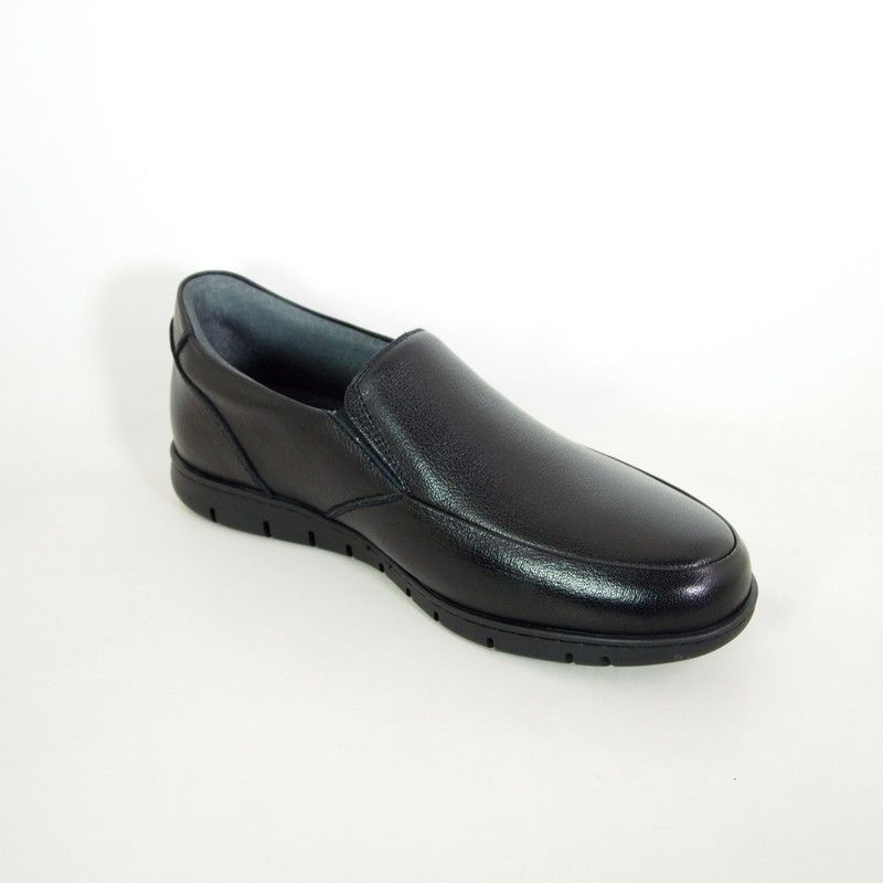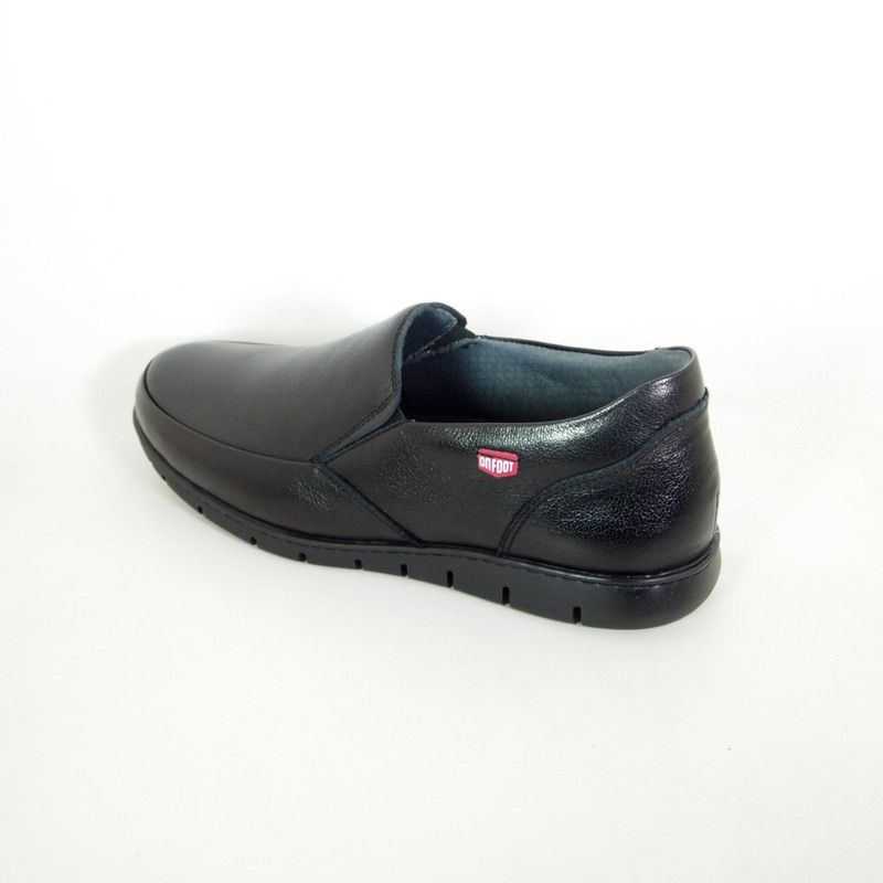 Zapatos lisos con ajuste de elásticos para hombre On Foot 8903 en piel negra con suela muy flexible.