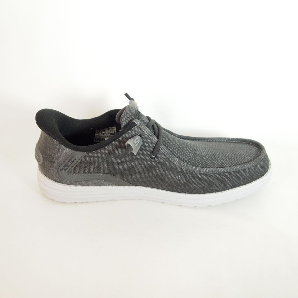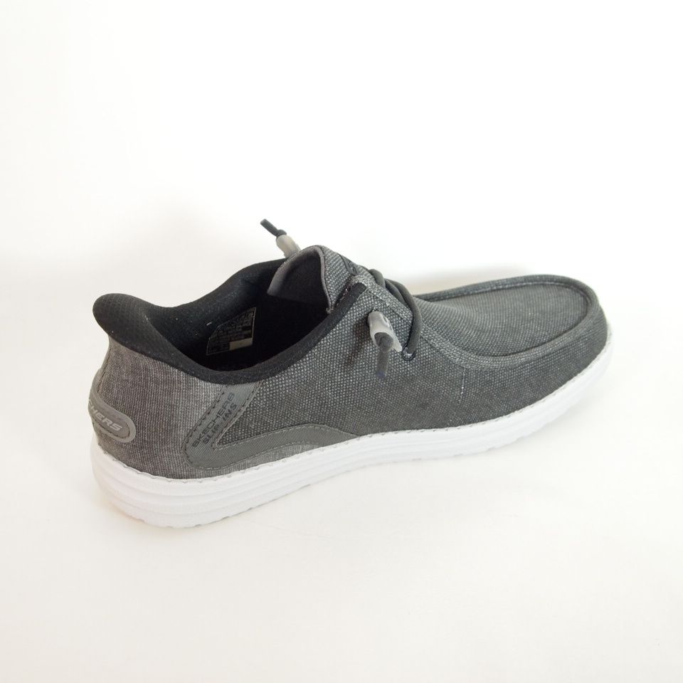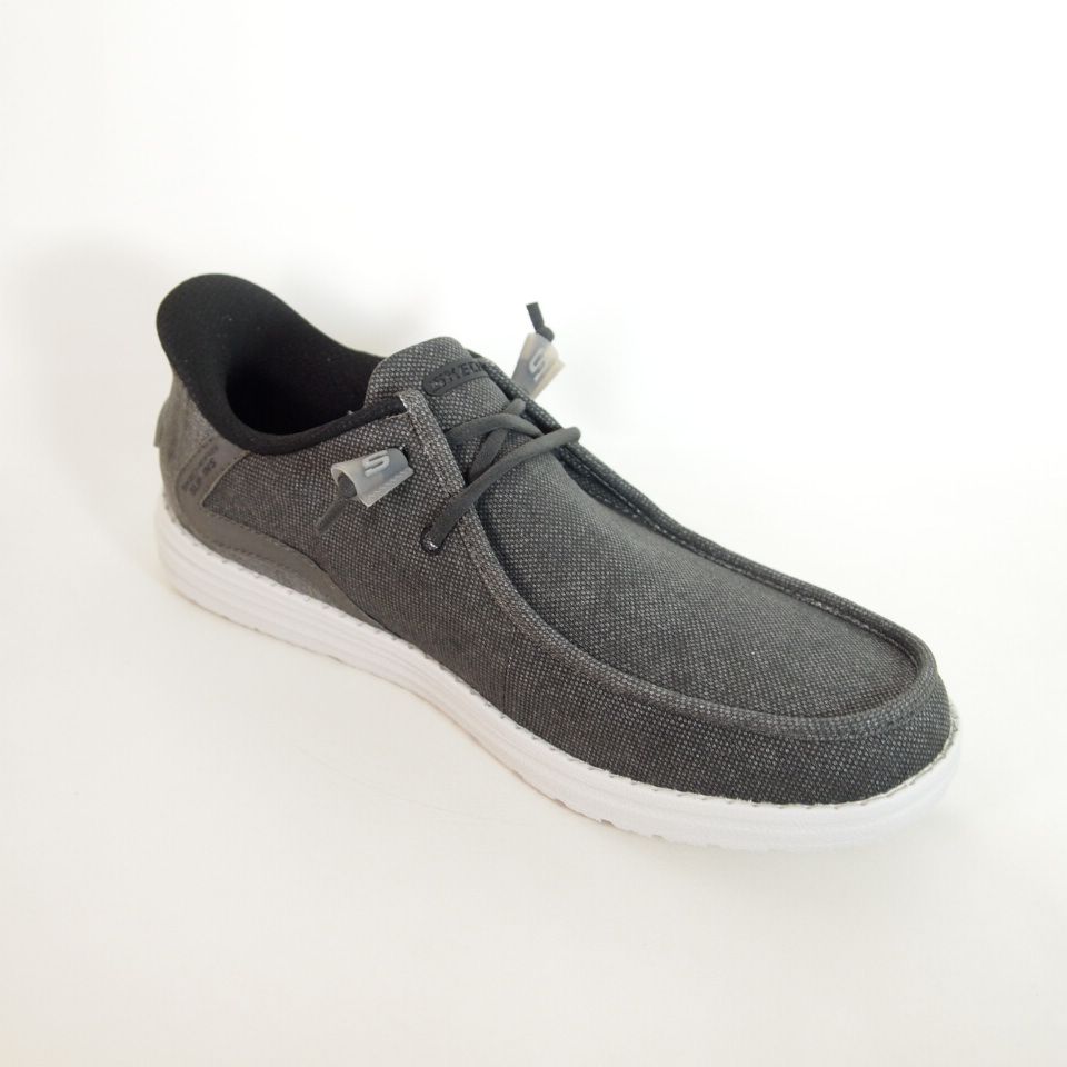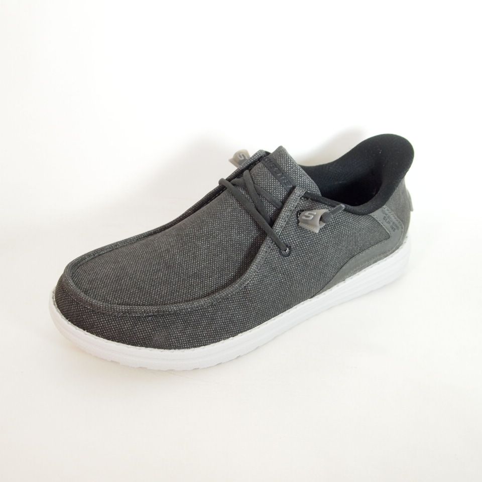 Los Skechers Slip-Ins Melson-Coronado 210959 en color denim combinan comodidad, funcionalidad y estilo casual en un diseño sin cordones. Equipados con la innovadora tecnología Hands Free Slip-Ins™, estos mocasines permiten calzarse fácilmente sin usar las manos, brindando una experiencia práctica y rápida. Su parte superior de tejido canvas transpirable en tono taupe aporta frescura y un look relajado, ideal para el día a día. La plantilla acolchada con Air-Cooled Memory Foam® se adapta al pie para ofrecer una pisada suave, mientras que la entresuela flexible y ligera absorbe impactos para mayor comodidad en cada paso. Perfectos para pasear, viajar o el uso urbano, los Melson-Coronado Slip-Ins son la elección ideal para hombres que buscan estilo informal sin renunciar al confort característico de Skechers.